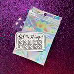 Each wallet-sized punch card is printed on sturdy cardstock, ready for you to color in and fill out with the included iridescent mini stickers.