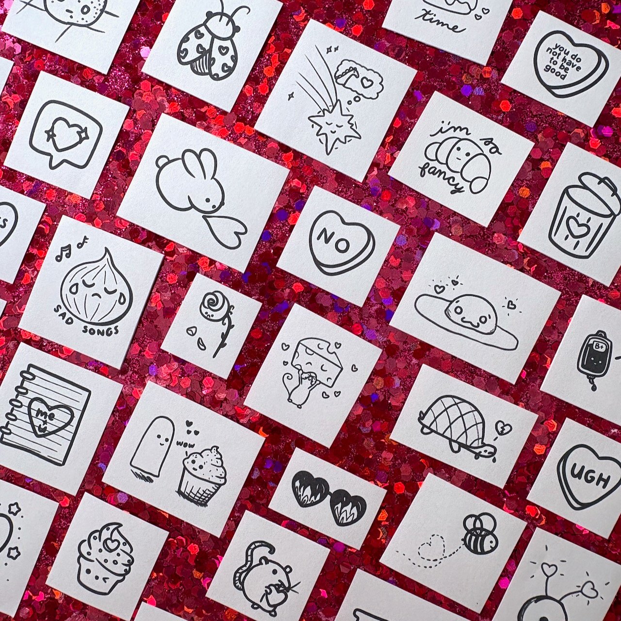 Love takes many forms. Sometimes it's sweet; sometimes it's salty, full of bitter tears; and sometimes it gets a little... spicy. However you're feeling, I've got you covered with this pocket pack of matte paper mini-stickers, ideal for gifting or ready to add to your notebook, sketchbook, planner, calendar, or snail mail.